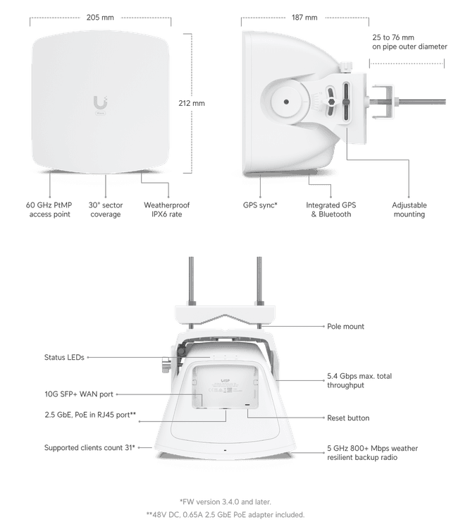 فرکانس کاری * ۵۷-۷۱ گیگاهرتز